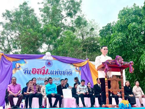 นนทะเนตร นายอำเภอแกดำ อ่านสาส์นจากนายกรัฐมนตรี นายอนุทินชาญวีรกุล เนื่องในวัน อสม.แห่งชาติ พร้อมด้วยนายแพทย์หัสชา เนือยทอง นายแพทย์สาธารณสุขจังหวัดมหาสารคาม นายพลพัฒน์ จรัสเสถียร นายกองค์การบริหารส่วนจังหวัดมหาสารคาม หัวหน้าส่วนราชการ ผู้นำท้องถิ่น และประชาชนเข้าร่วมกิจกรรม